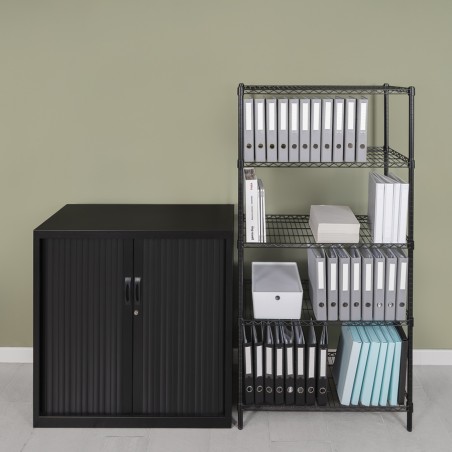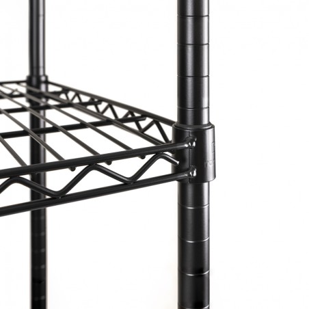 Czarna farba epoksydowa to specjalistyczna powłoka składająca się z żywicy epoksydowej i utwardzacza, stosowana w celu ochrony i upiększenia naszych regałów. Oferuje właściwości izolacyjne, jednolitą powłokę w kolorze matowej czerni, całkowitą wodoodporność i wysoką wytrzymałość na uderzenia. To wykończenie nadaje naszej gamie regałów dużą odporność i trwałość. Jest to rozwiązanie do magazynowania, które łączy funkcjonalność i atrakcyjny wygląd z długotrwałą ochroną, a ponadto oferuje: