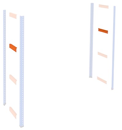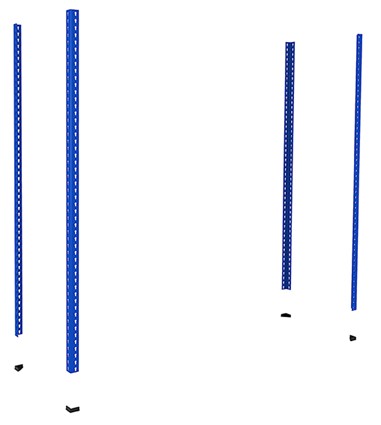 - 4 słupy szczelinowe w kolorze niebieskim o wysokości 1981 lub 2438 mm z plastikowymi stopkami.