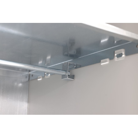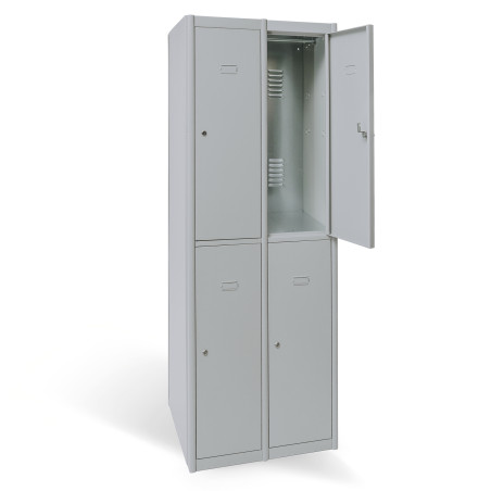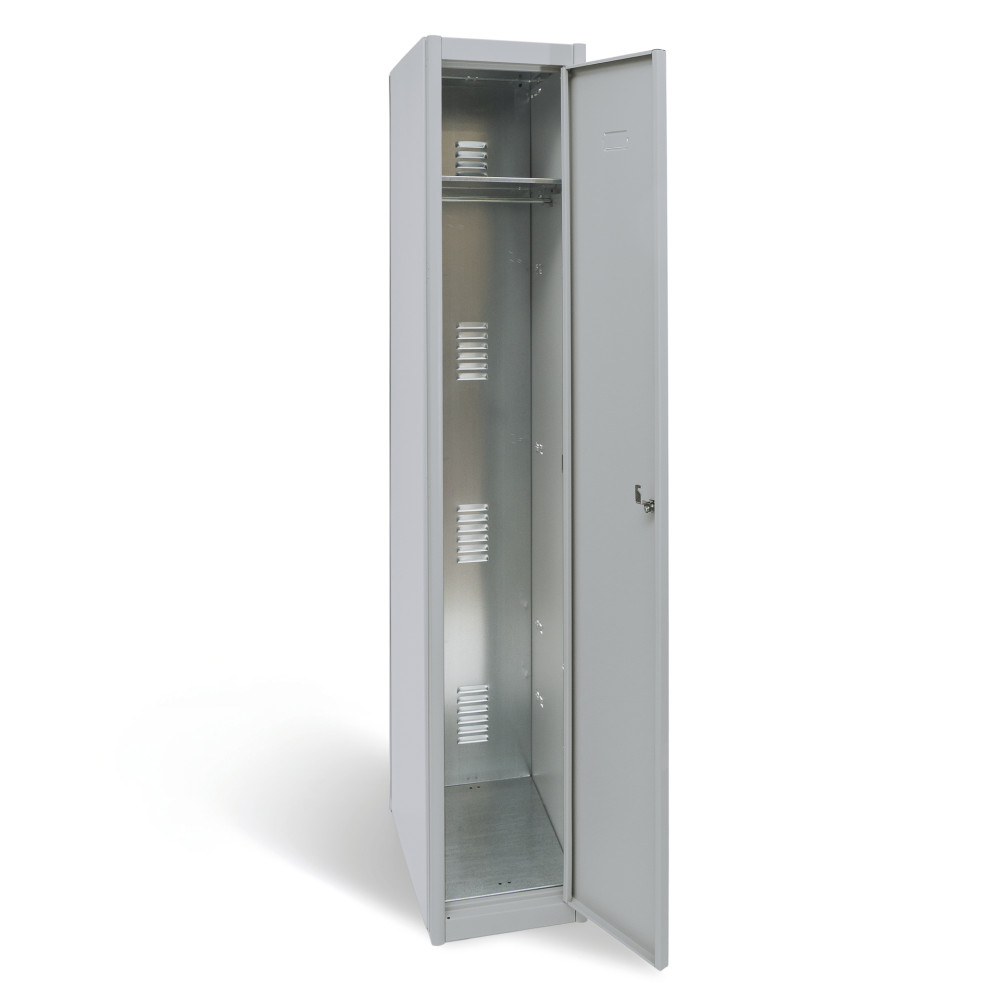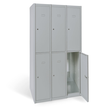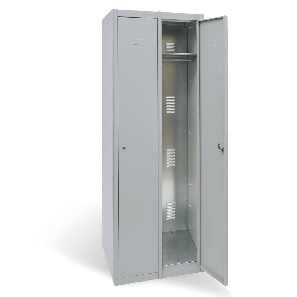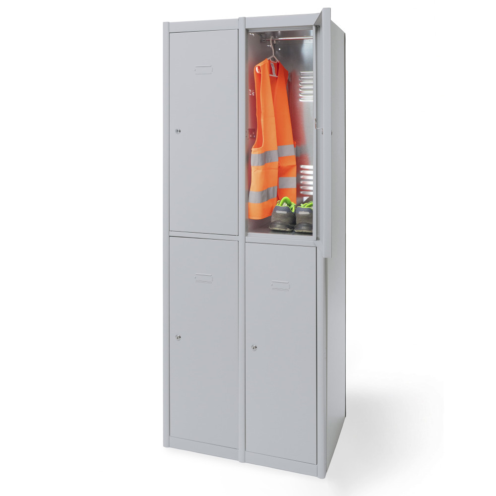 W zestawie znajduje się wewnętrzny drążek na ubrania, który zapobiega ich marszczeniu, oraz zintegrowana etykieta ułatwiająca identyfikację i utrzymanie porządku.System zamków z zamkami głównymi umożliwia efektywne zarządzanie dostępem za pomocą indywidualnych kluczy i klucza głównego. Dostępna jest również opcja zamka na kłódkę.